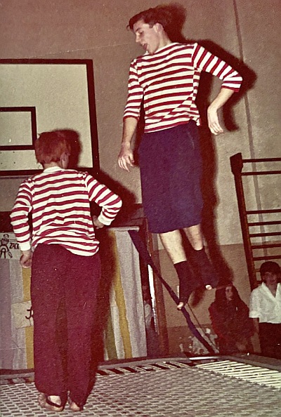 In der Schule gab's bislang zweifellos gelungene Abschlussfeiern mit Themen wie der obligatorischen "Carmina Burana", 1961 in der Turnhalle und 1962 im Gang von Erich super stark inszeniert und dem schluchzigen Singspiel "Schwarzer Peter" von Helmut Demetrio zu Ehren seiner eher angepassten 10Mi63, das konnte unsere 10Mi64 natürlich in dieser Geschmacksrichtung nicht kopieren, das wollten wir auch nicht. Gerhart Seiter hat´s damals fertig gebracht, für seine angeblich wenig musikalische (von wegen, siehe Feldberg-Video) aber dafür kreative und genial sportliche Klasse genau das Richtige zu finden. Eine Revue, Thema Segeln mit einer Taufe des von Erichs Werkgruppen selbstgebastelten Segelboots. Ein damals umstrittenes Konzept, Kritik kam von Lehrern, vorallem Eltern und einigen Schülern (so ähnlich steht´s in unserer Bollenzeitung). Texte von Brecht, Tanz, Gesang mit "Liedern der 20er", Sketche, teils urige und tradierte Reden waren ebenfalls angesagt, aber alles locker mit viel Selbstironie verpackt, beim Zugucken und beim Mitmachen hatte man echten Spaß. Das war ein innovatives Schulprojekt, weg von den muffigen Zöpfen der Altvorderen.